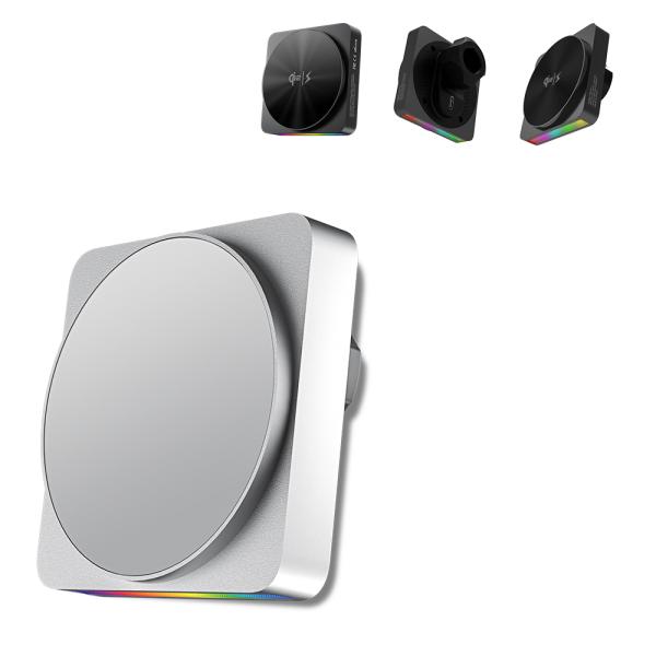 Fast-Charging Leader,15W wireless charging, 3x faster than standard 5W. Nowadays, young people like the atmosphere in their cars. We have improved this product based on this pain point. Compared with the monochromatic lights on the market, this product is less monotonous. Multiple lights can be switched freely according to your own preferences. The light goes out when the phone is charging. Our charger not only keeps the light on, but also automatically adjusts the brightness according to the volume of the music, adding more colors to the car. The lights on the market are circular, and ours The difference is that this one is a square light with two pillars next to it, which is more distinctive, easy to install, and visually simpler. It has an all-metal texture, which is higher than the plastic ones on the market. It also has enhanced magnetic force. 12 N52 magnets are integrated to strengthen the suction. It has strong suction and will not fall off when bumped.